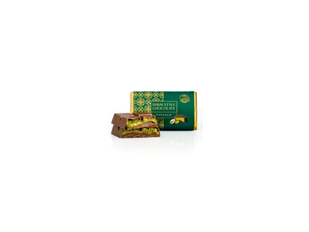 Dubajská čokoláda od "Gulerfamily baklava & bakery" je vyrobená z prvotřídních surovin, kvalitní čokolády, sytě zelených Antep pistácií a křupavého kadayifu neboli kunafe.